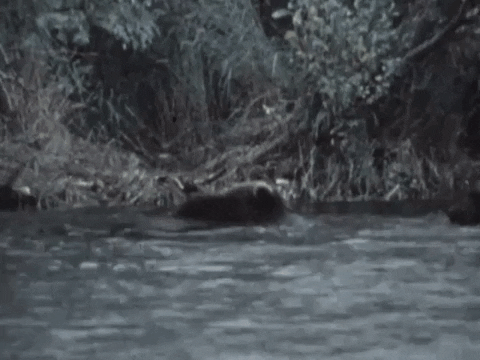 The bears hang out in this area to eat a truckload of fish and fatten up for winter hibernation.